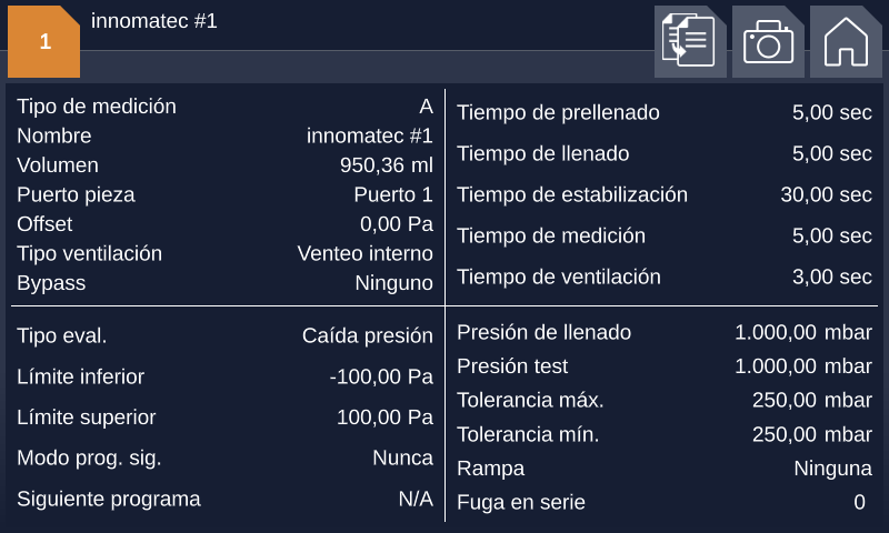 - Rampa de llenado: aumento lento de la presión para piezas de prueba sensibles